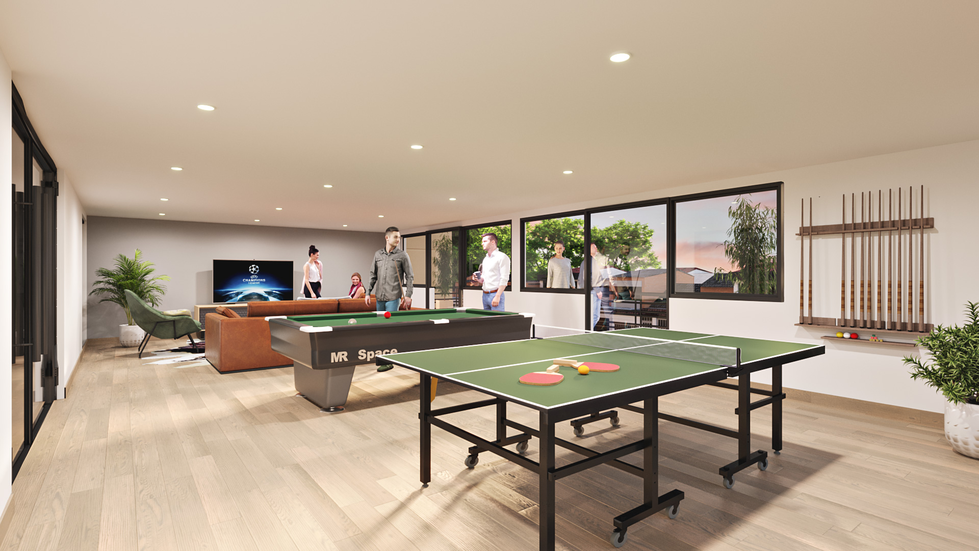 Nada como pasar un rato con los amigos e hijos jugando al billar y viendo un buen partido de fútbol.